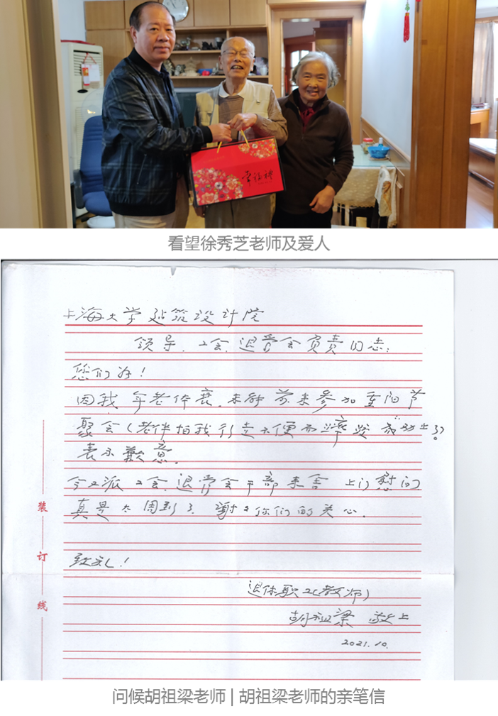10月20日,院工会主席张军、财务总监曹媛等设计院骨干成员组成的慰问小组,继续重阳慰问活动,看望了因病未能参加重阳聚会的徐秀芝老师及爱人;探望了长年卧病在床的退休职工刘霞萍老师并捐款献爱心;亲切问候了同样因病未能参加重阳聚会的90高龄的胡祖梁老师,因病未能赴宴的胡老师特意手写了一封满怀遗憾的“请假信”,显现出退休职工与15vip太阳集团设计院的尺牍情深。